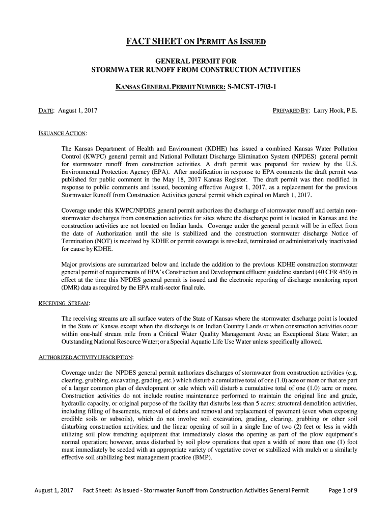 KANSAS GENERAL PERMIT NUMBER: SMCST17031