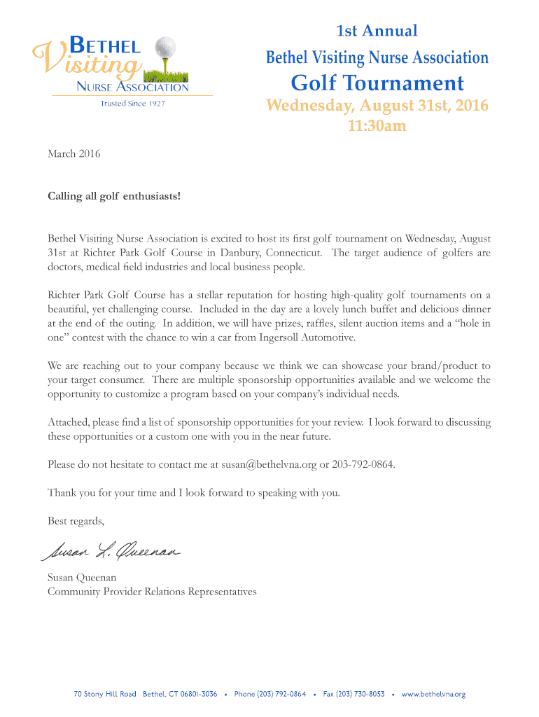 Trusted Since 19271st AnnualBethel Visiting Nurse AssociationGolf Tournament Wednesday, August 31st, 2016