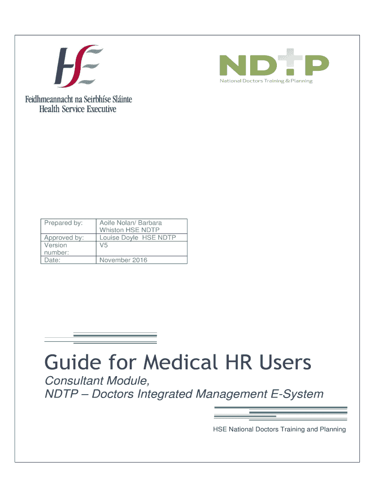 Prepared by: Approved by: Version number: Date:Aífe Nolan/ Barbara Whist on HSE NTP Louise Doyle HSE NTP V5 November 2016Guide for Medical HR Users Consultant Module, NTP Doctors Integrated Management