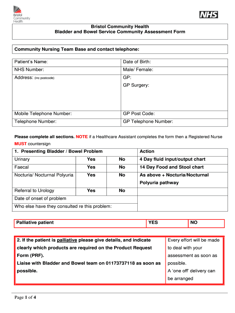 Bladder and Bowel Service Community Assessment FormCommunity Nursing Team Base and contact telephone: