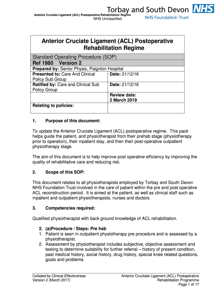 Anterior Cruciate Ligament (ACL) Postoperative Rehabilitation Regiments UnclassifiedAnterior Cruciate Ligament (ACL) Postoperative
