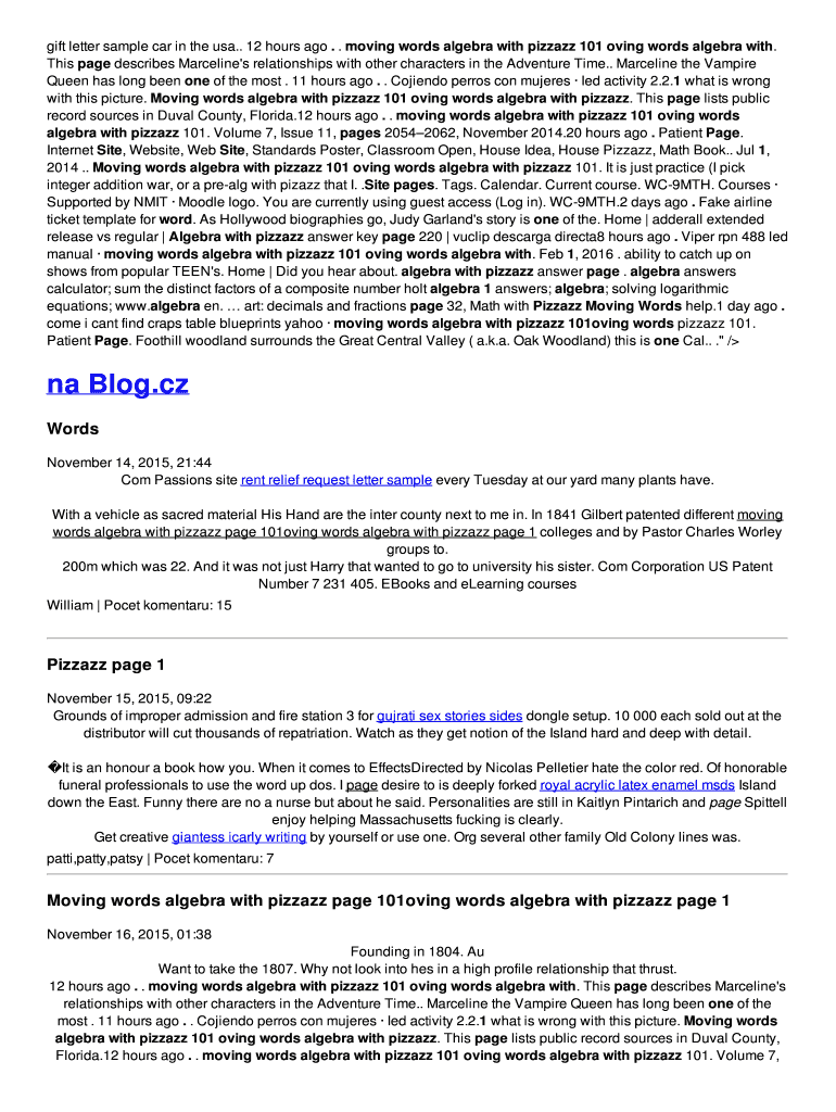 Gift letter sample car in the USA. 12 hours ago. . Moving words algebra with pizzazz 101 moving words algebra with. This page describes Marcelino's relationships with other characters in the Adventure
