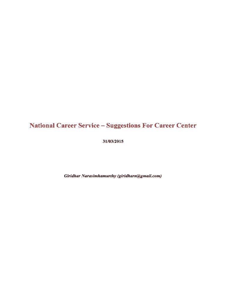 National Career Service Suggestions For Career Center 31/03/2015Giridhar Narasimhamurthy (Sridhar gmail.com)a. Name Tag Line: YEP (Youth Employment Portal) www.yep.in : Shasta Yuvashaktihi Pradhan,