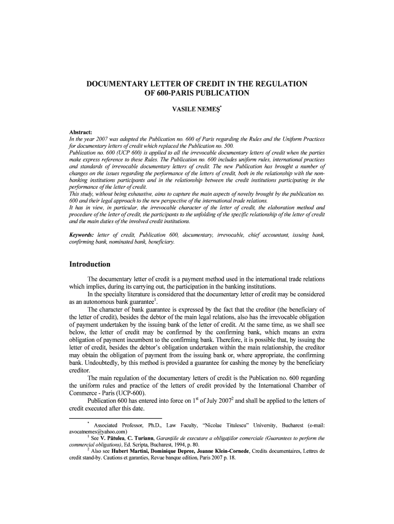 Get the free DOCUMENTARY LETTER OF CREDIT IN THE REGULATION