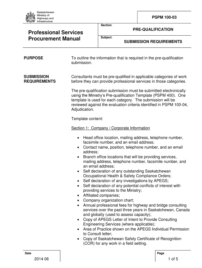 Subject:SUBMISSION REQUIREMENTSPURPOSETo outline the information that is required in the prequalification