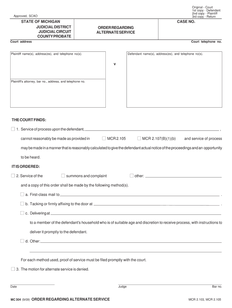 Get the free Michigan Order Regarding Alternate Service