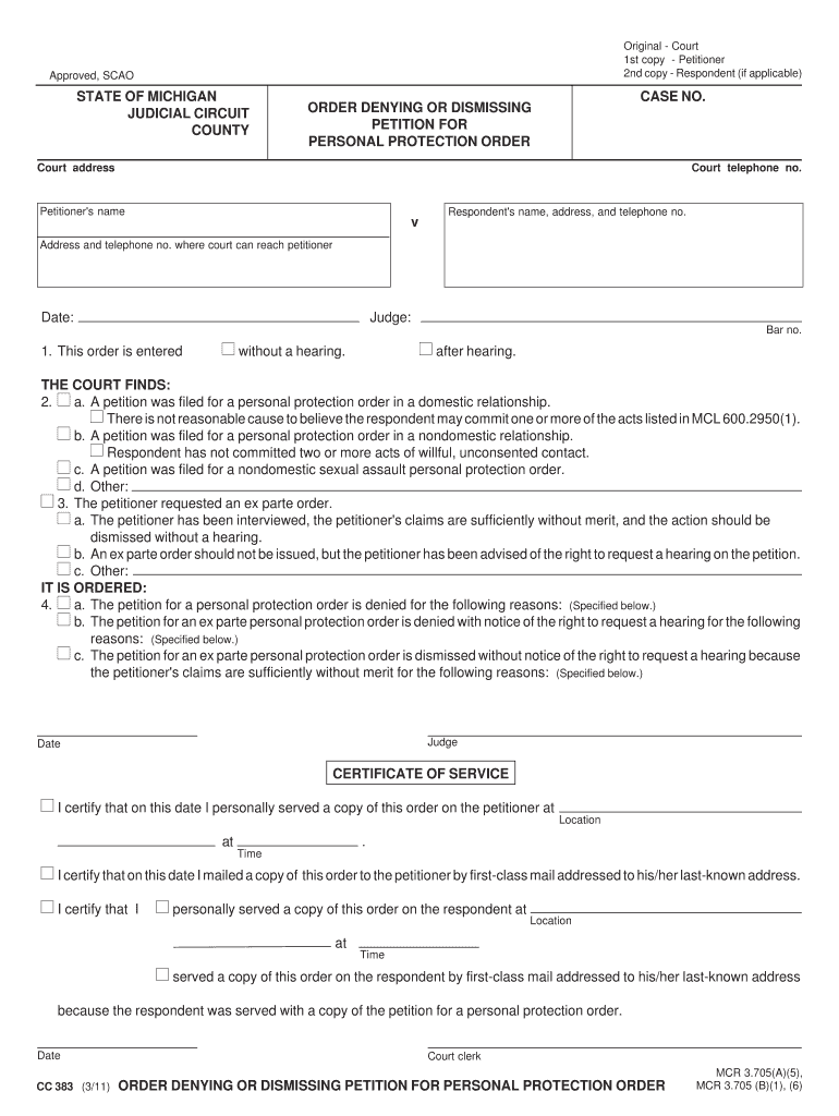 Common Errors and How to Avoid Them When Filing the Michigan Order Denying Personal Protection