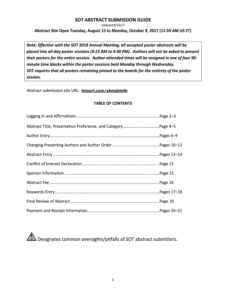 Get the free Note:EffectivewiththeSOT2018AnnualMeeting,allacceptedposterabstractswillbe