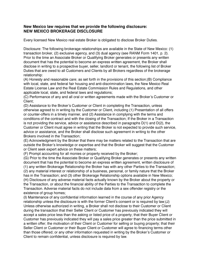 NEW MEXICO BROKERAGE DISCLOSURE