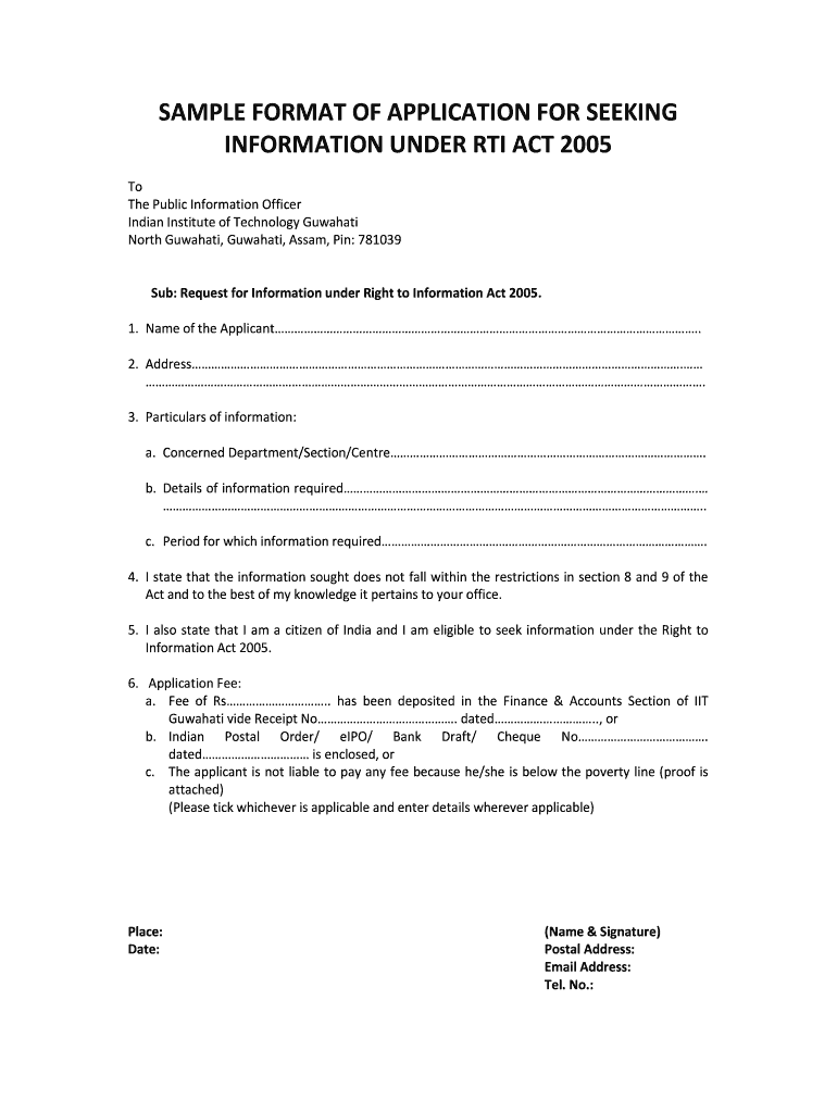 Individuals or entities who are interested in applying for a specific program, job, or service are required to file the sample format of application.