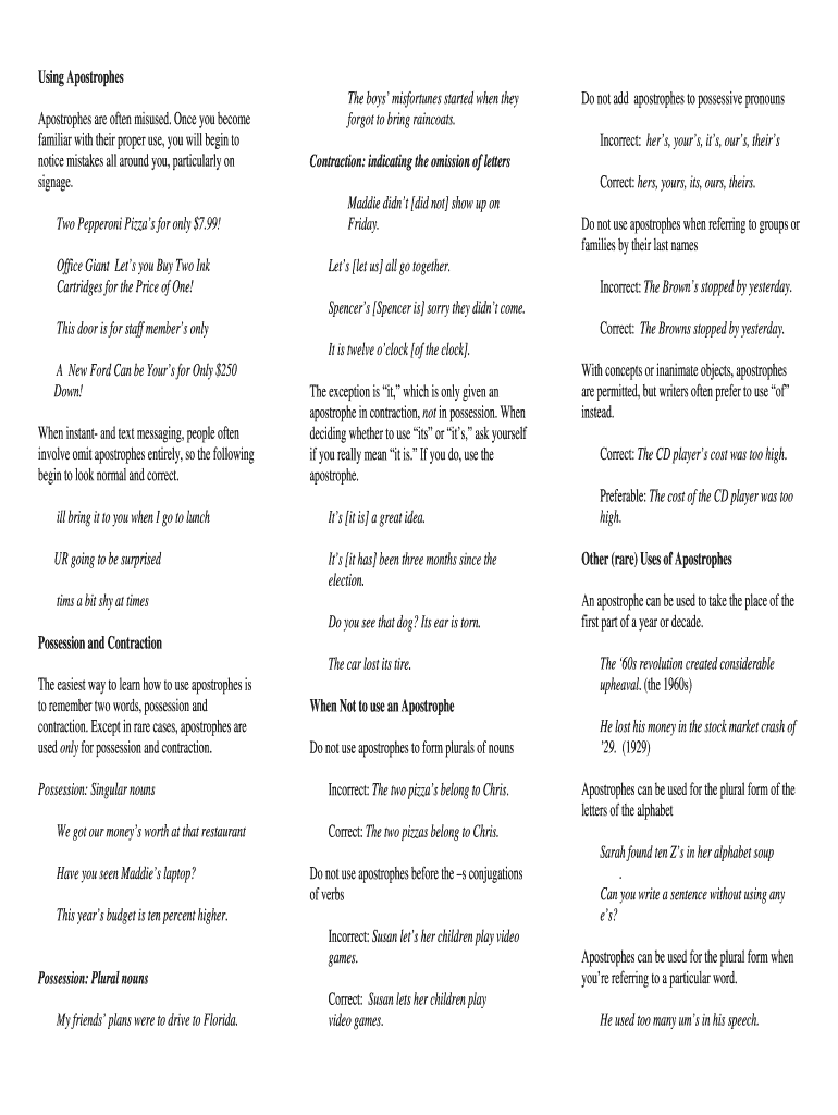 Information related to correct grammar usage and rules regarding apostrophes should be considered.