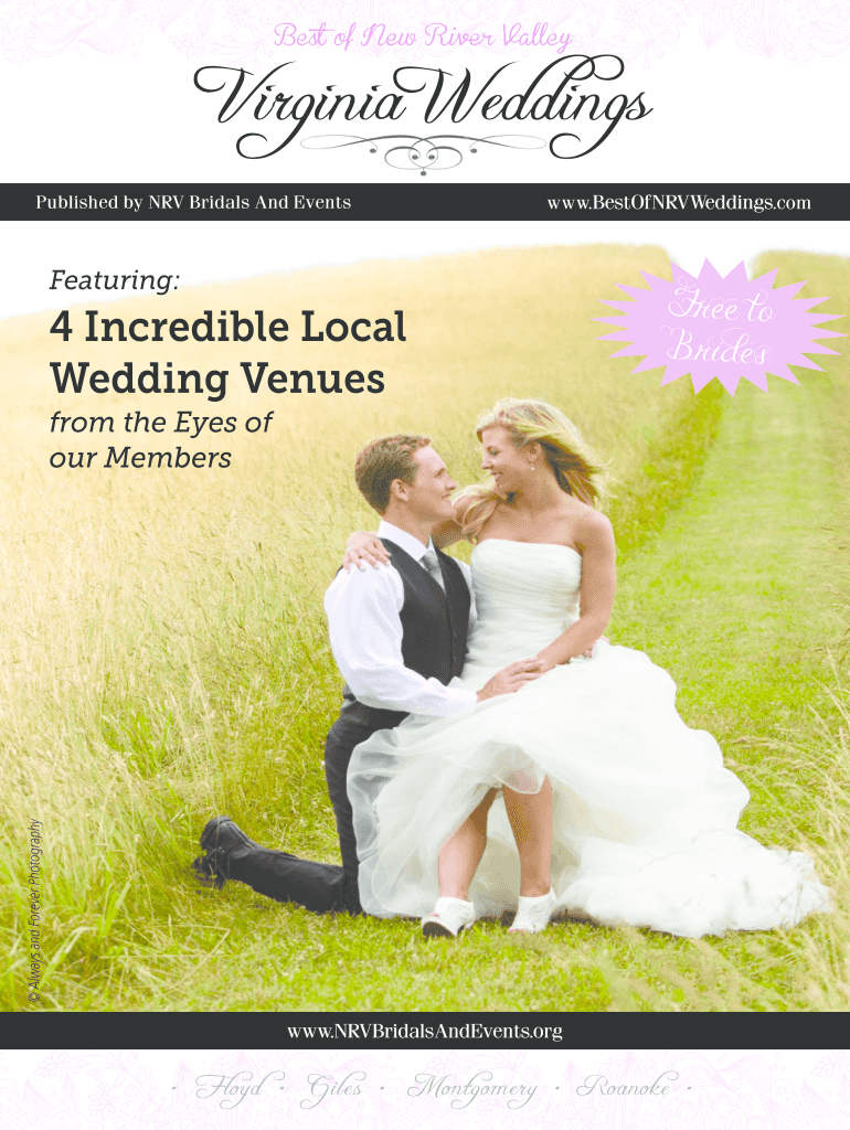 Best of New River ValleyPublished by NRL Bridals And Events. BestOfNRVWeddings.featuring:4 Incredible Local Wedding VenuesFree to Brides Always and Forever Photography from the Eyes of our Members.NRVBridalsAndEvents.org