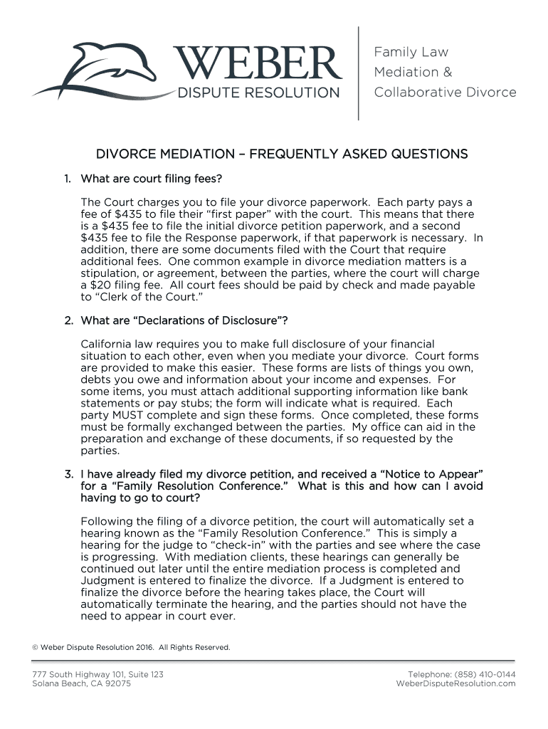 Get the free DIVORCE MEDIATION FREQUENTLY ASKED QUESTIONS