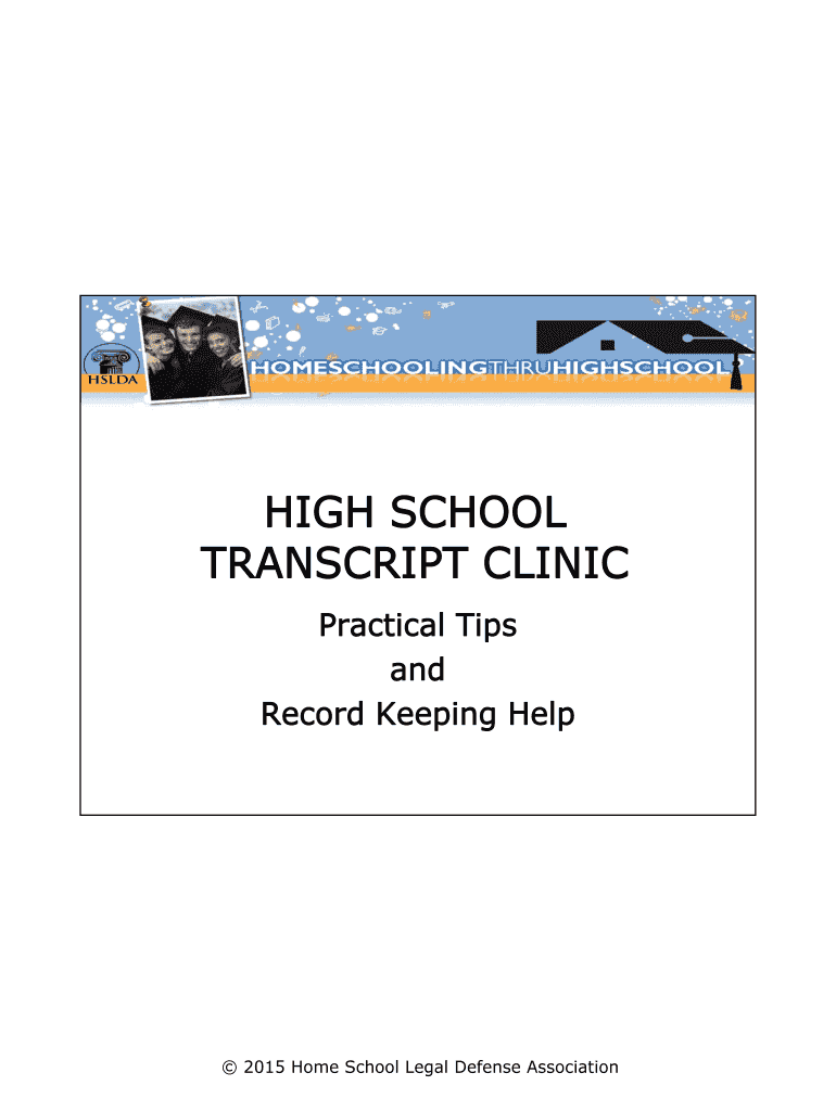 HIGH SCHOOL TRANSCRIPT CLINIC Practical Tips and Record Keeping Help 2015 Home School Legal Defense AssociationHIGH SCHOOL TRANSCRIPT CLINIC Practical Tips and Record Keeping Repurposes of Records