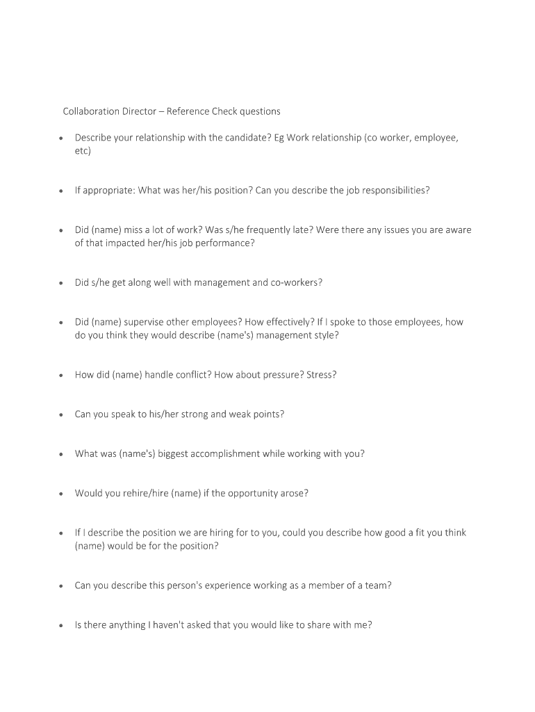 Get the free Collaboration Director Reference Check questions