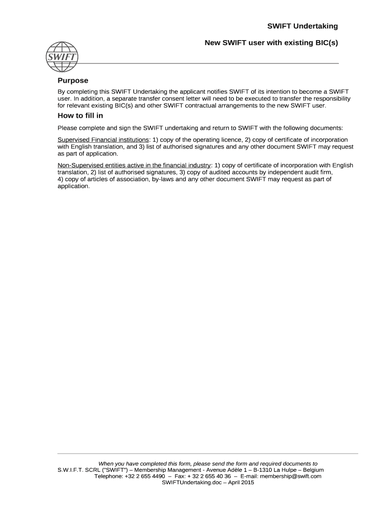 Get the free By completing this SWIFT Undertaking the applicant notifies SWIFT of its intention t...