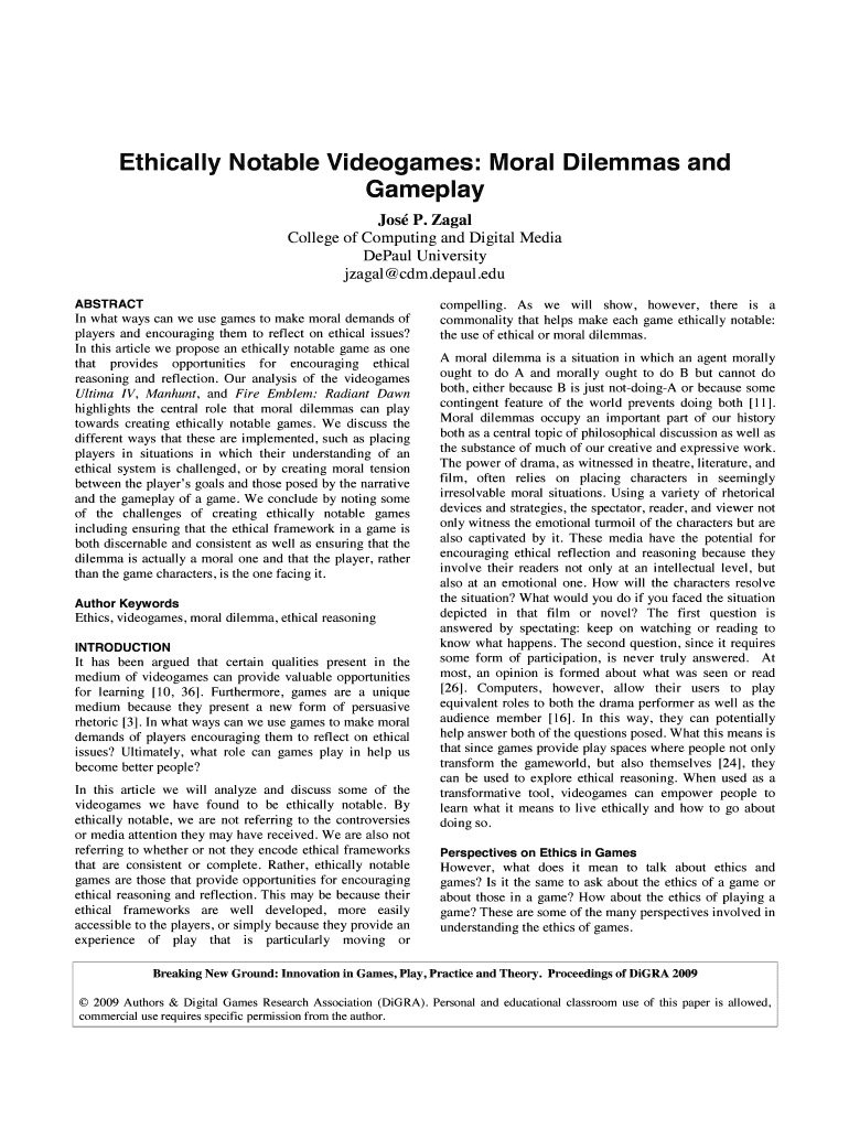 Get the free Ethically Notable Videogames: Moral Dilemmas and