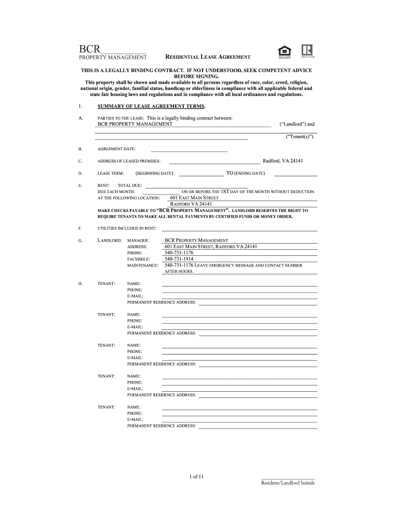 Get the free BRESIDENTIAL LEASEb AGREEMENT - BCR Property Management
