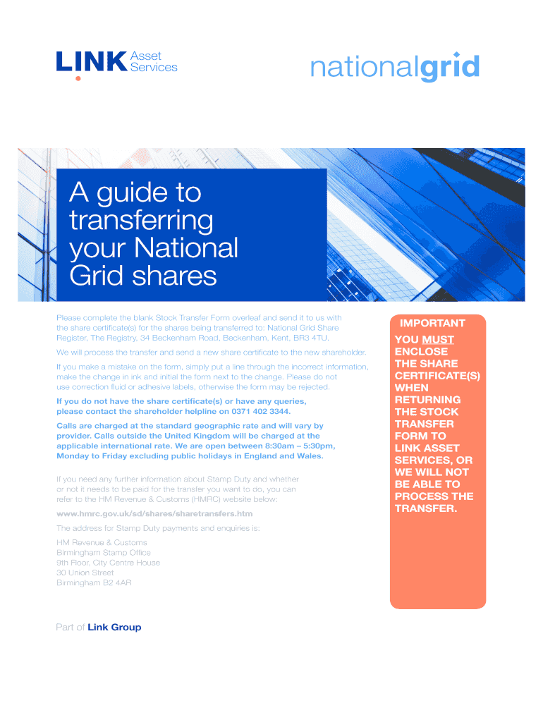 Please complete the blank Stock Transfer Form overleaf and send it to us with