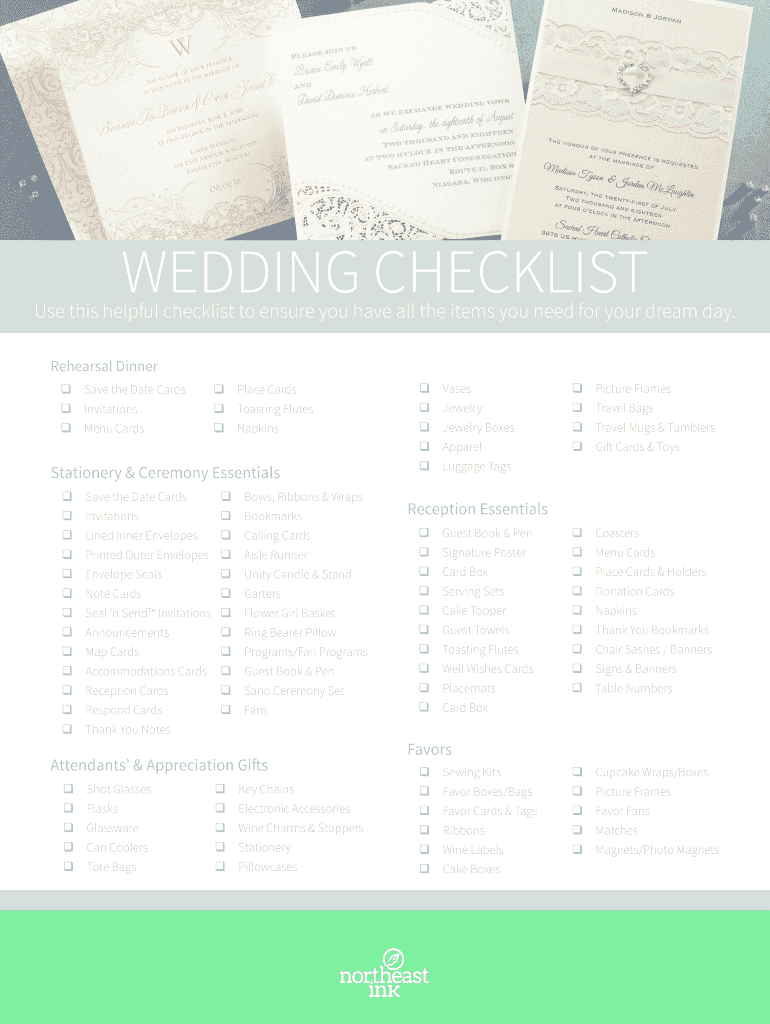 WEDDING Checklists this helpful checklist to ensure you have all the items you need for your dream day. Rehearsal Dinner q save the Date Cards Invitations Menu Cards q place Cards Toasting Flutes