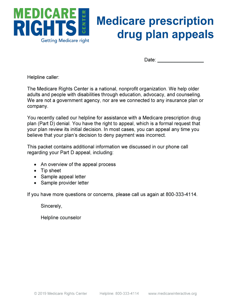 Medicare prescription drug plan appeals Date: Helpline caller: The Medicare Rights Center is a national, nonprofit organization. We help older adults and people with disabilities through education,