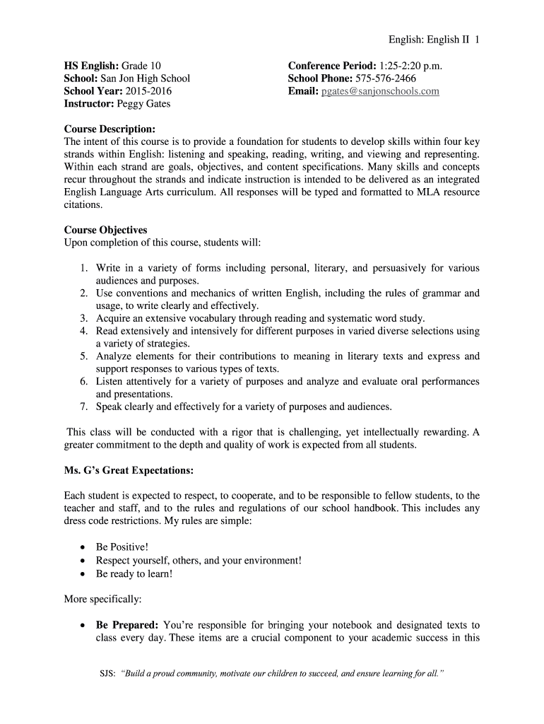English English II 1 can be filled out by providing the required information in the respective fields of the form.