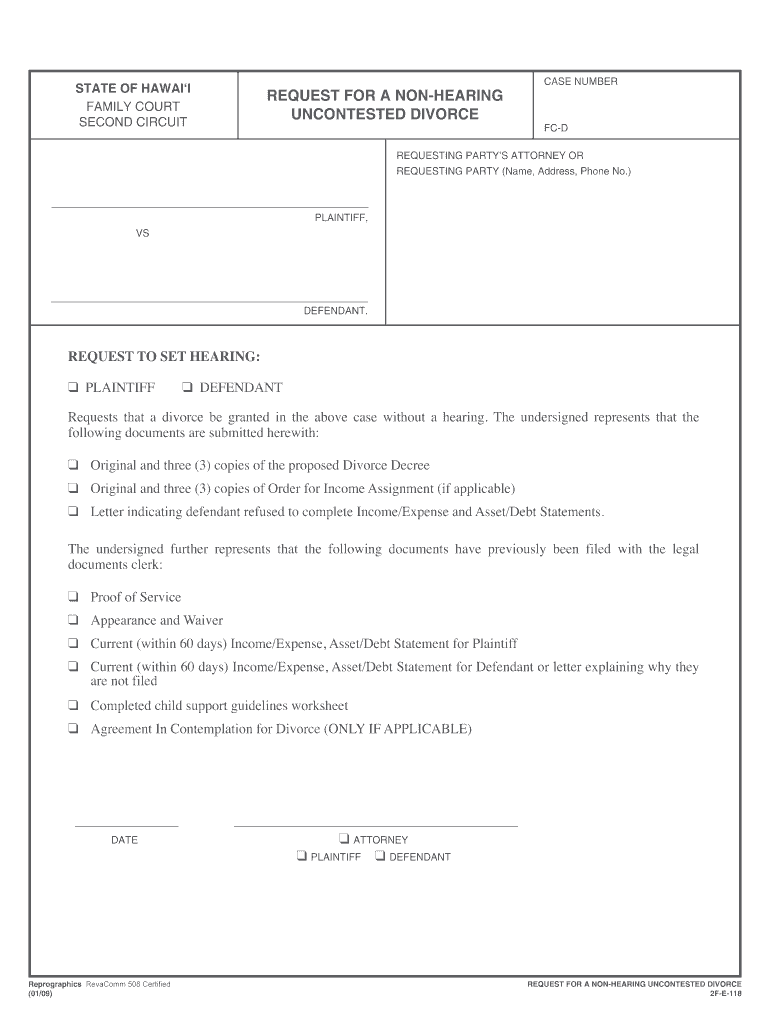 Get the free Hawaii Uncontested Divorce Request