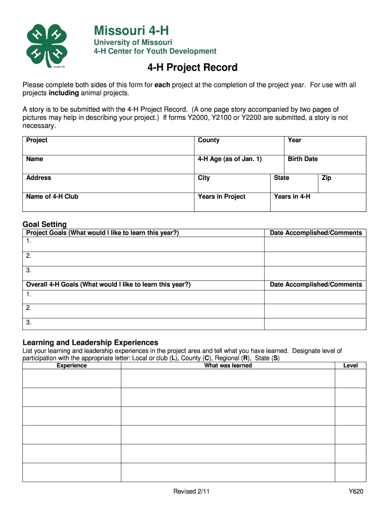 Any 4-H member in Missouri who has completed a project is eligible to use the Missouri 4-H Project Record Form for documenting their activities and achievements.