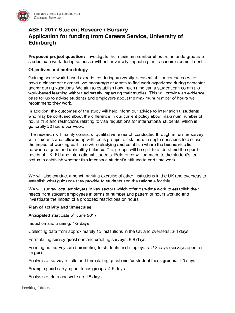 The application for funding must include details on the financial need, project goals, budget breakdown, and potential impact.