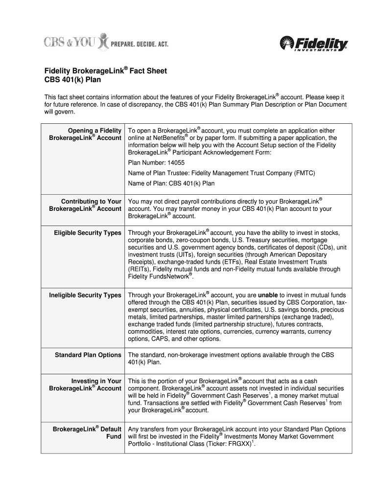 This fact sheet contains information about the features of your Fidelity BrokerageLink account. Please keep it