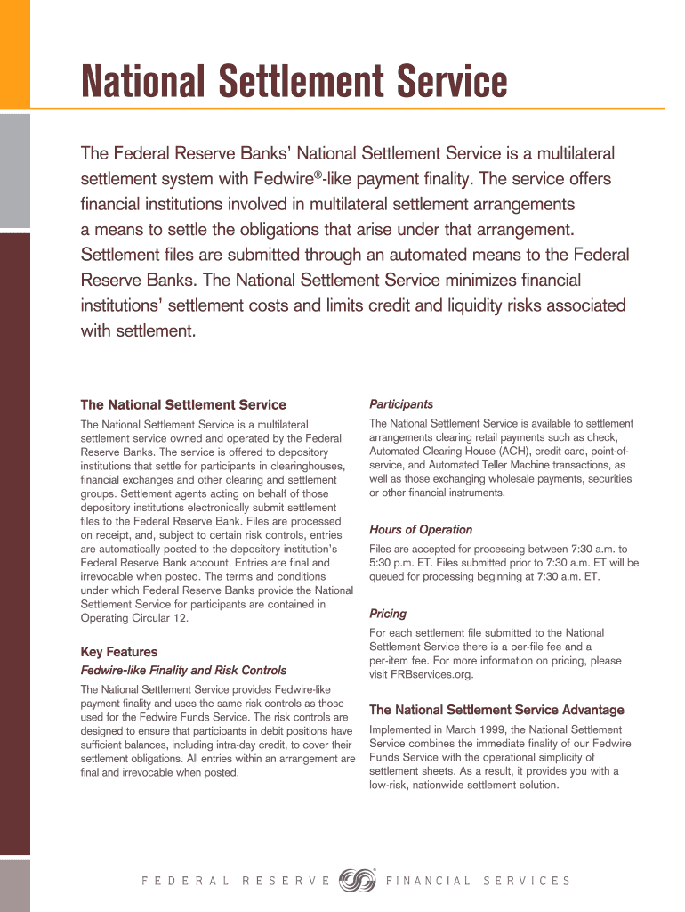 Fill out your national settlement service online with pdfFiller!