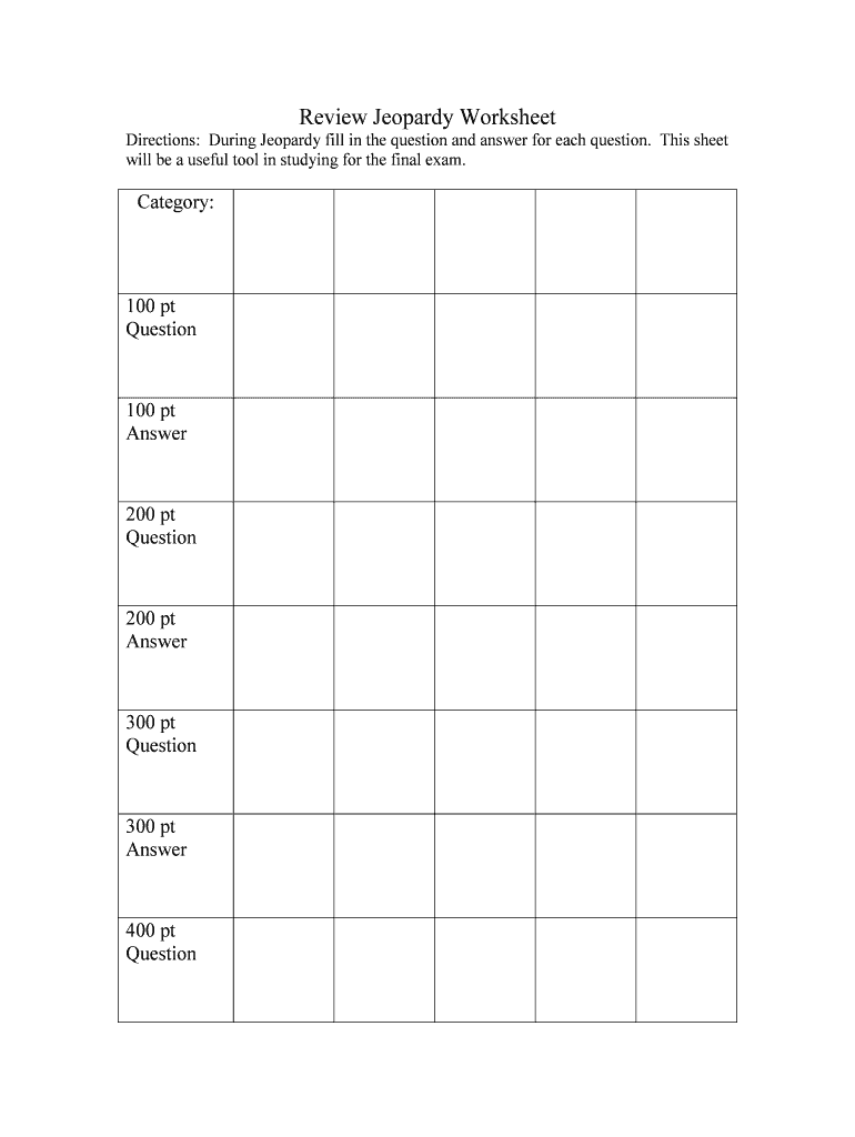 Review Jeopardy Worksheet