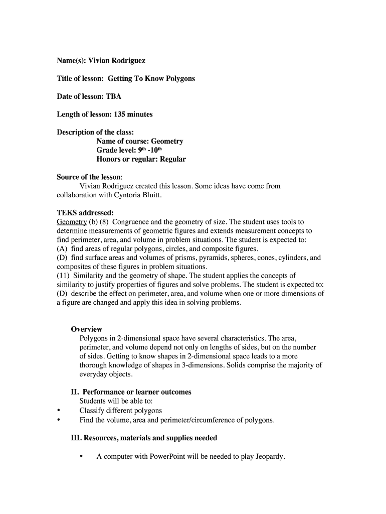 Title of lesson: Getting To Know Polygons