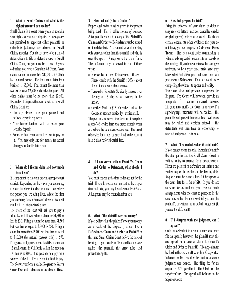 Get the free What is Small Claims and what is the