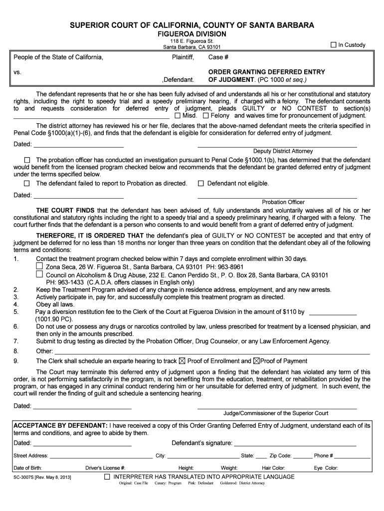 How to fill out the california deferred entry of
