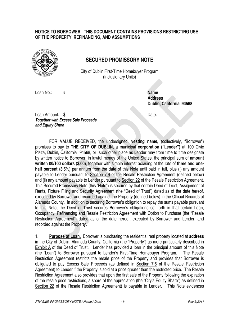 OF THE PROPERTY, REFINANCING, AND ASSUMPTIONSSECURED PROMISSORY NOTE
