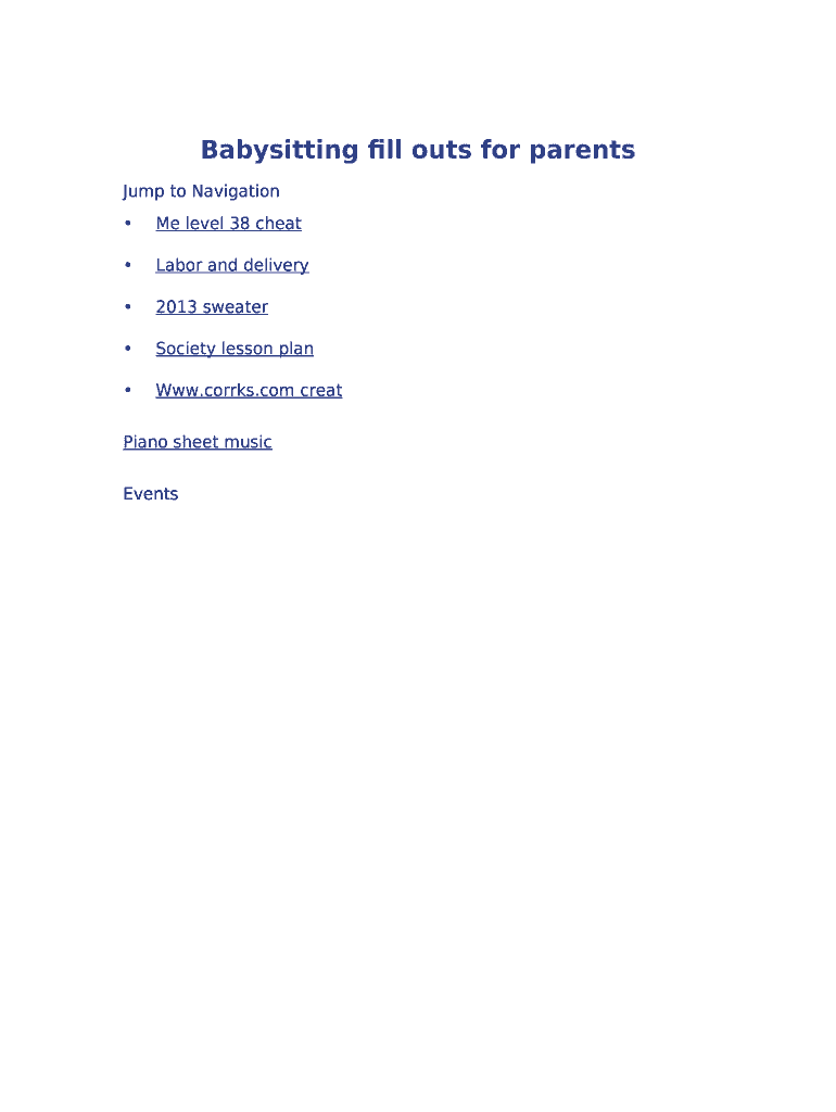 Babysitting fill outs for parents Jump to Navigation Me level 38 cheat Labor and delivery 2013 sweater Society lesson plan WWW.corrks.com creating sheet musicEventsBabysitting fill outs for parents