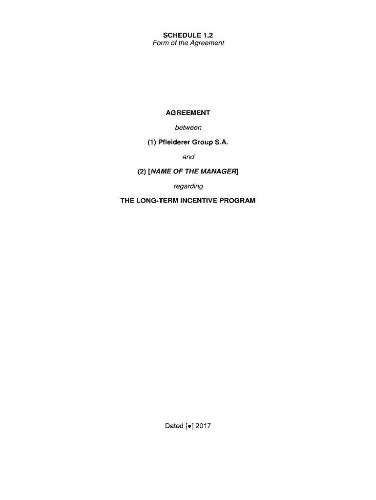 SCHEDULE 1.2 Form of the AgreementAGREEMENT between (1) Clearer Group S.A. and (2) NAME OF THE MANAGER regarding THE LONGER INCENTIVE Programmed 2017CONTENTS ClausePage1.DEFINITIONS .................................................................................................