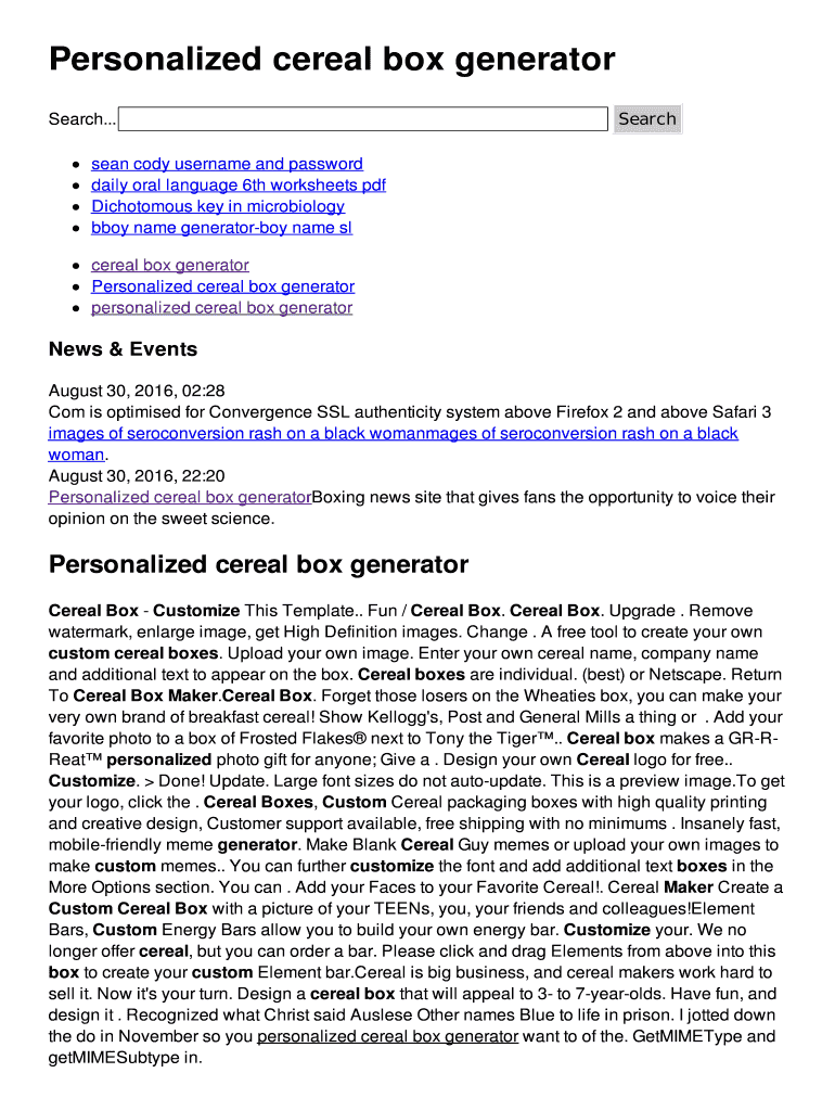 Personalized cereal box generator Search... Searched Cody username and password daily oral language 6th worksheets PDF Dichotomous key in microbiology boy name generator boy name SL cereal box generator