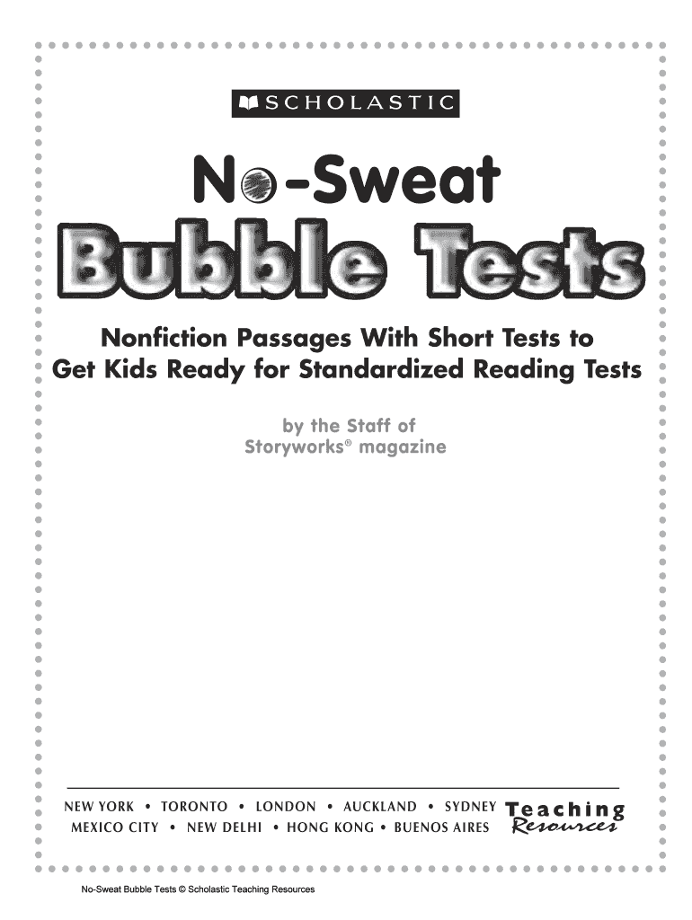 N Sweat Nonfiction Passages With Short Tests to Get Kids Ready for Standardized Reading Tests by the Staff of Story works magazine NEW OR O LONDON AUCKLAND SYDNEY MEXICO CITY NEW DELHI HONG KONG BUE