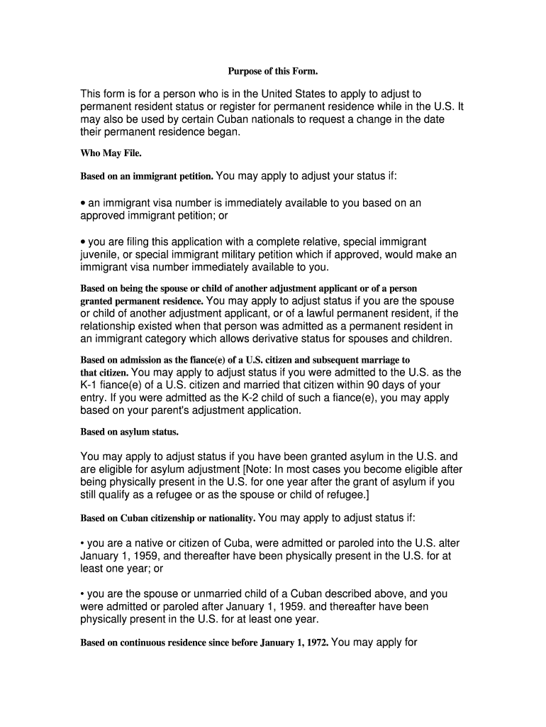 The US Permanent Residence Application Form is an immigration application used by individuals in the United States to apply for adjustment to permanent resident status.
