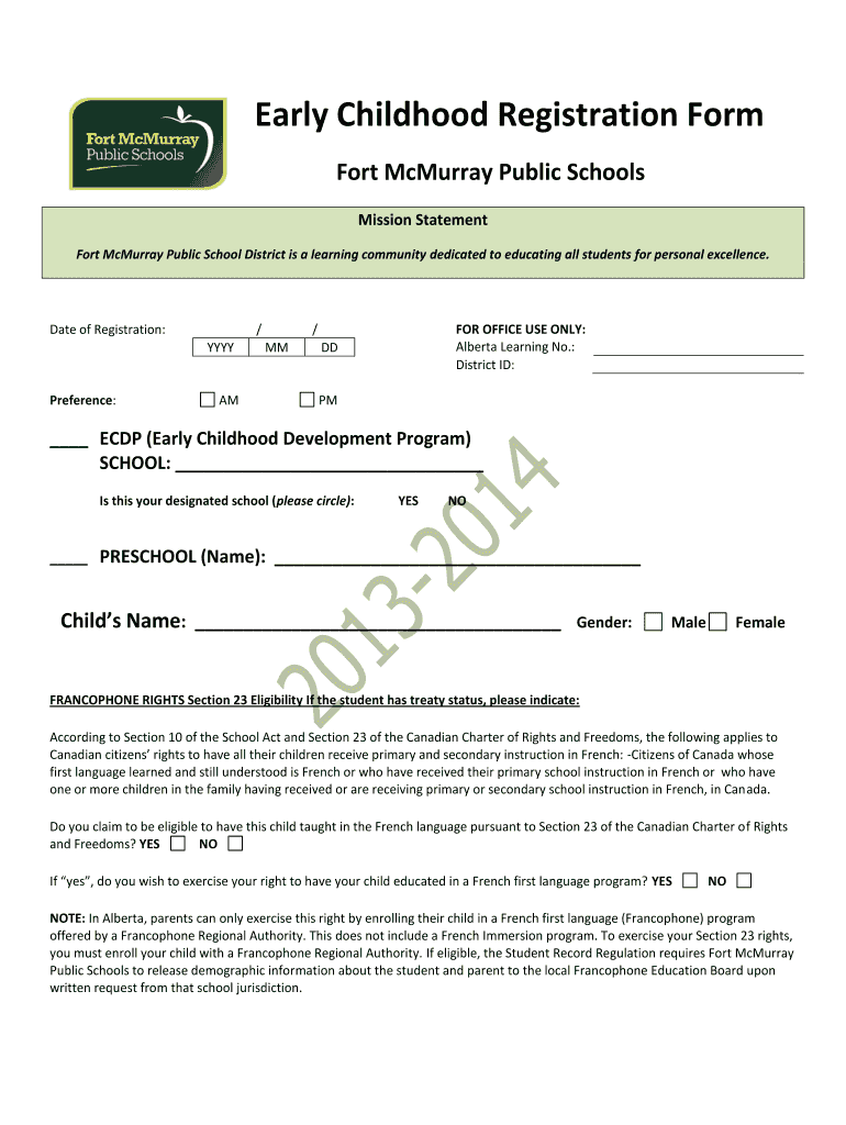 The Early Childhood Registration Form is a crucial document used by Fort McMurray Public Schools to enroll children in early childhood development programs and preschool.