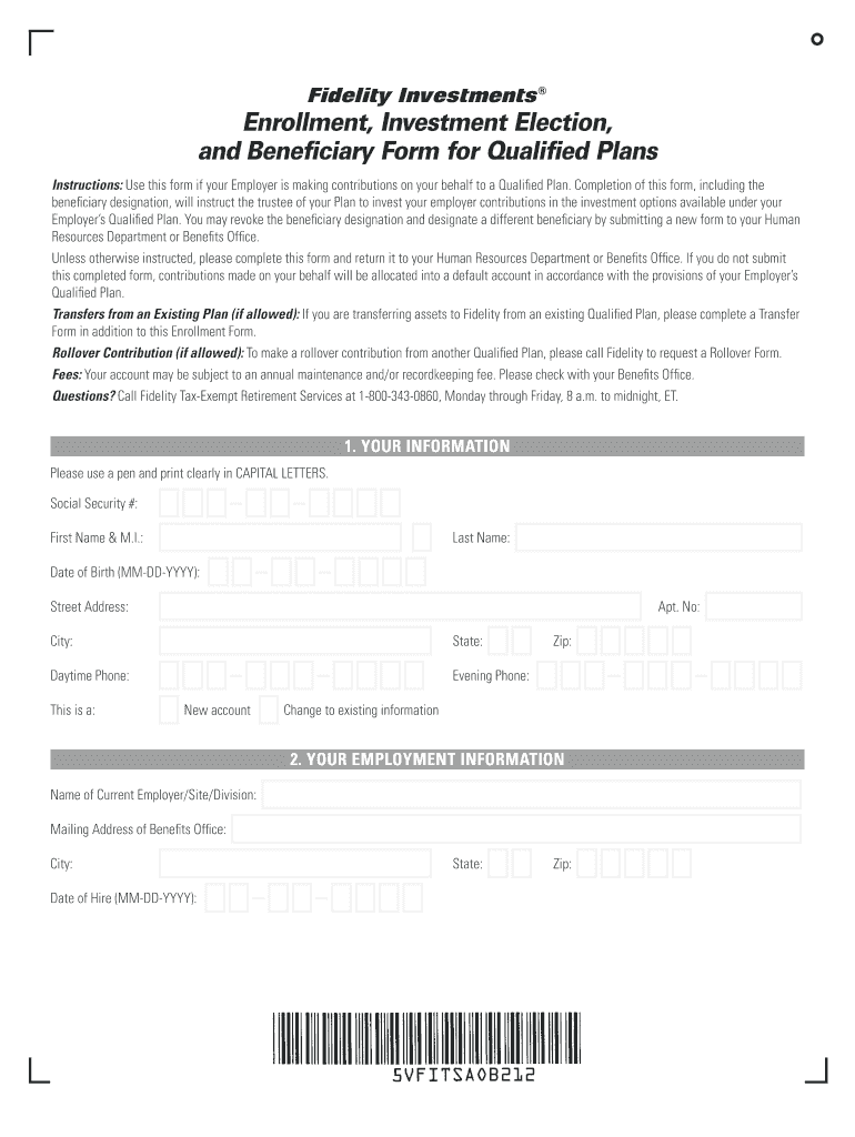 Fidelity Investments Enrollment, Investment Election, and Been?diary Form for Quasi?ed Plans Instructions: Use this form if your Employer is making contributions to your behalf to a Quasi?ed Plan.