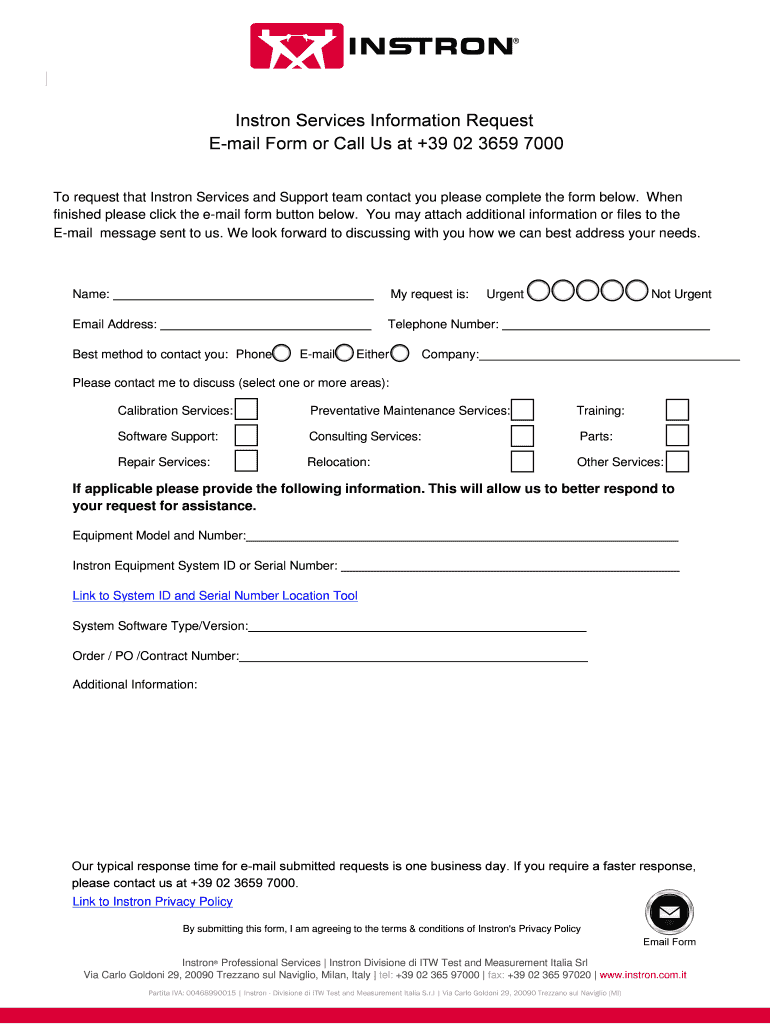 Submission Methods and Confirmation of Your Instron Service Request Form