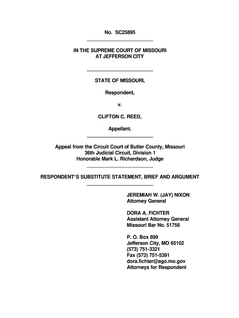 Get the free No SC25895 IN THE SUPREME COURT OF MISSOURI AT JEFFERSON - courts mo