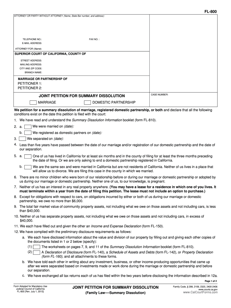 Get the free California Joint Petition for Summary Dissolution