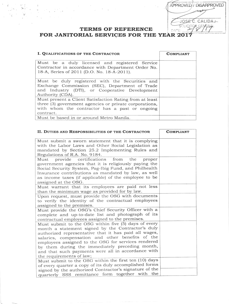 II. Qualifications of THE CoNTRAcToREIOLICITICoMPLTANTMust be a duly licensed and registeredService