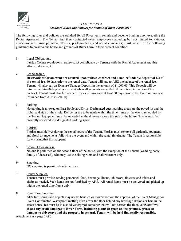The following rules and policies are standard for all River Farm rentals and become binding upon executing the