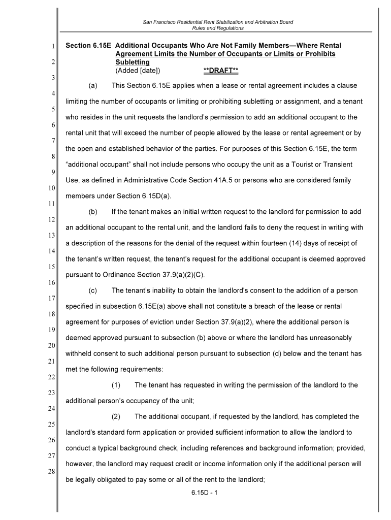 San Francisco Residential Rent Stabilization and Arbitration Board Rules and Regulations1 2 3Section 6.15E Additional Occupants Who Are Not Family Membership Rental Agreement Limits the Number of