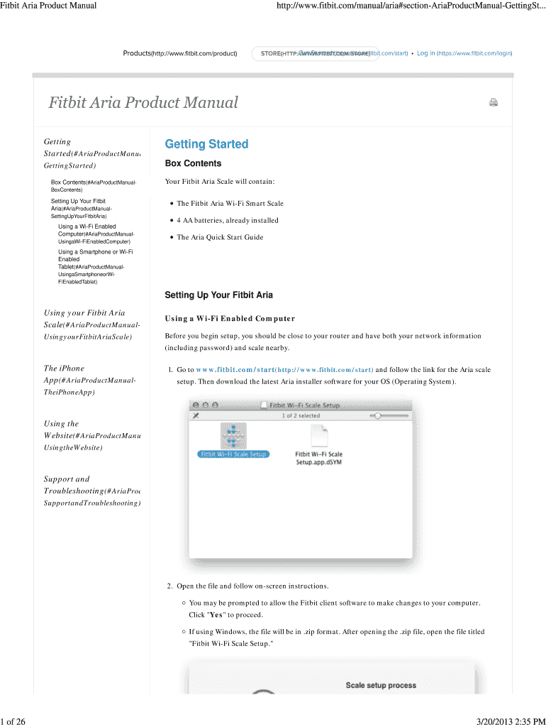 Fitbit Aria Product Manual1 of 26http://www.fitbit.com/manual/aria×sectionAriaProductManualGettingSt... Getting